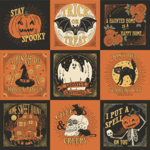 In addition to a wide range of prints and three perfectly spooky quilt patterns, Home Sweet Haunt has three sweet and spooky panels.